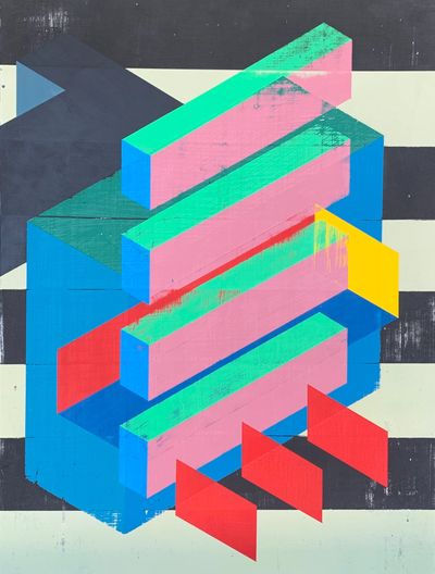 Within his paintings, a range of technical styles are demonstrated, playing with opacity, layering, patterning and color theory. Although simple in design, Lee’s paintings are hypnotic and otherworldly, forcing us to question our perception of shape, form and color. Recalling a classic video game aesthetic in some works, Lee’s cube structures take on an energy of life to them. The cubes are not just shapes but palpable beings and places, lightly holding their hovering stance in the compositions...