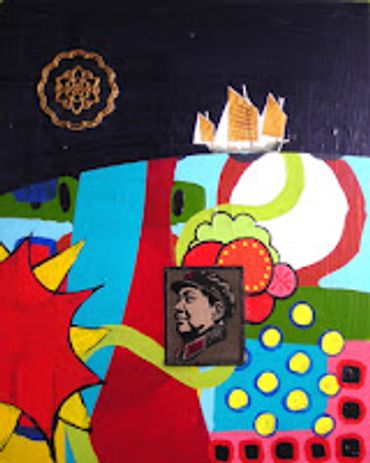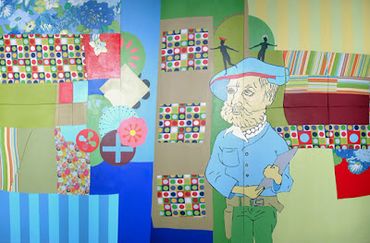 Collection work on fabric and wood